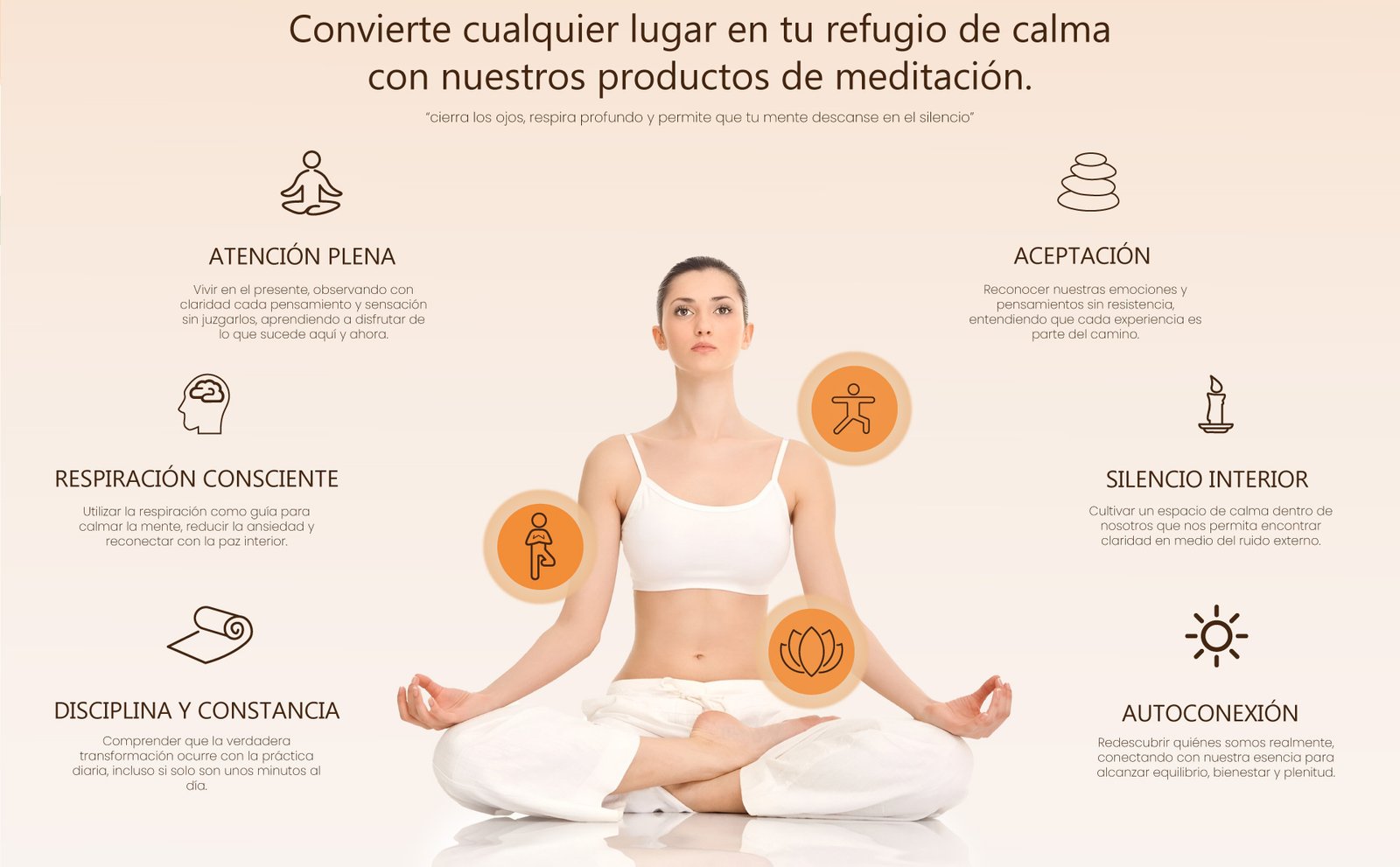 Cada mesa, almohada o accesorio está diseñado para acompañarte en tu práctica, pero también para recordarte algo simple y profundo: siempre puedes volver a ti mismo.